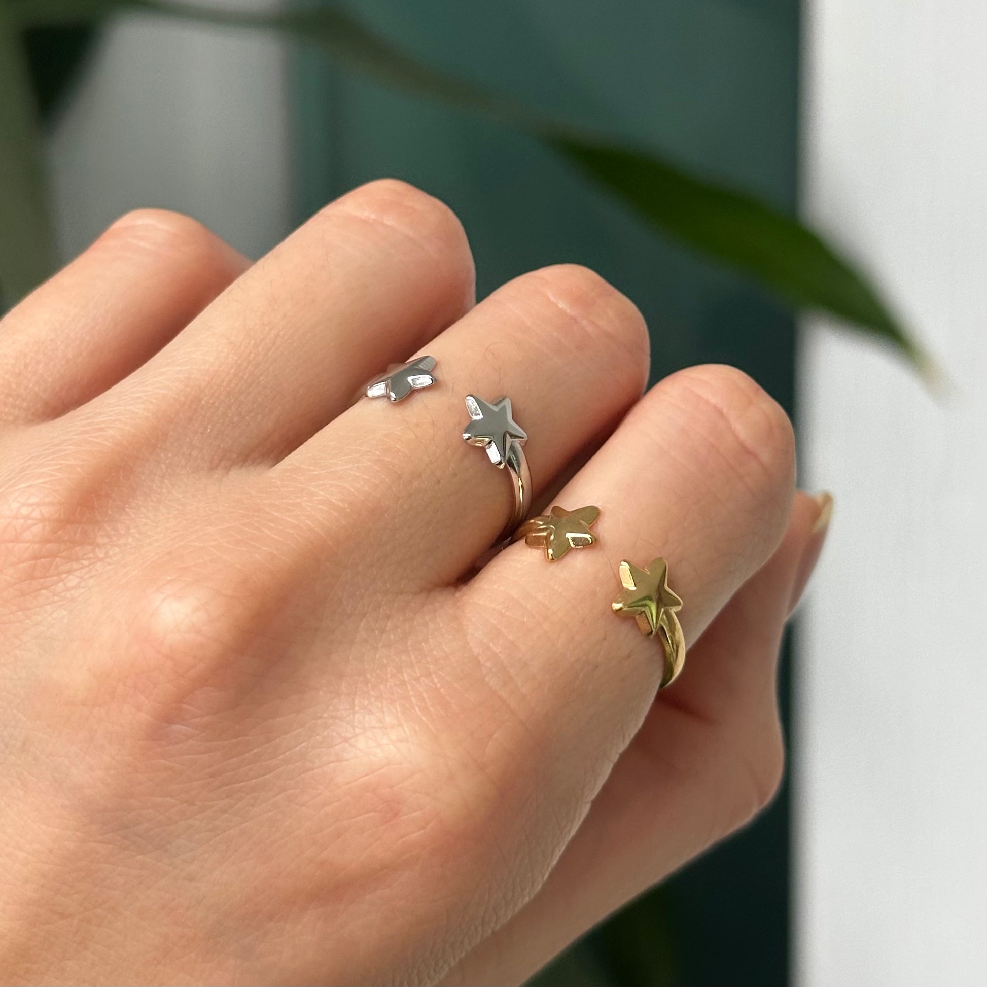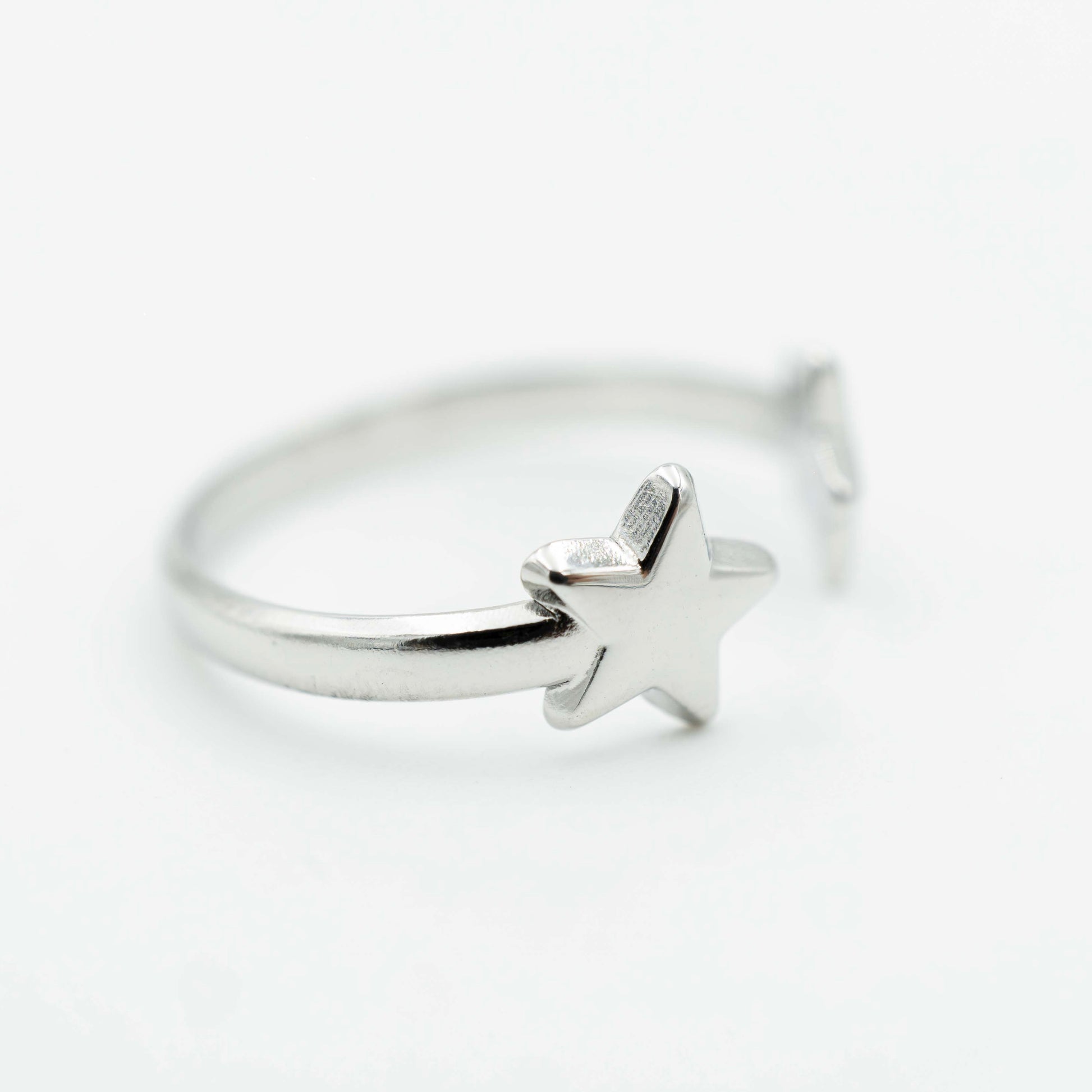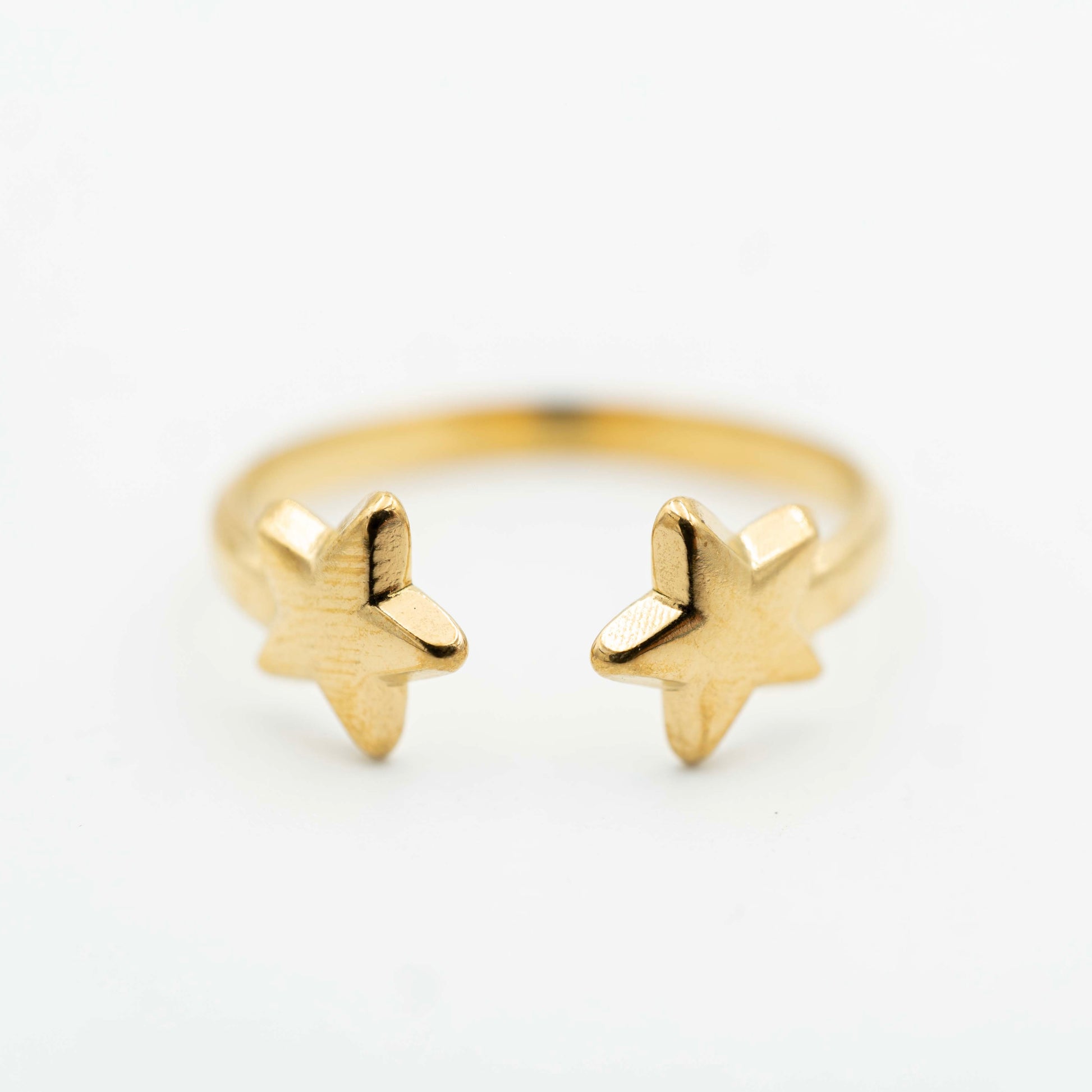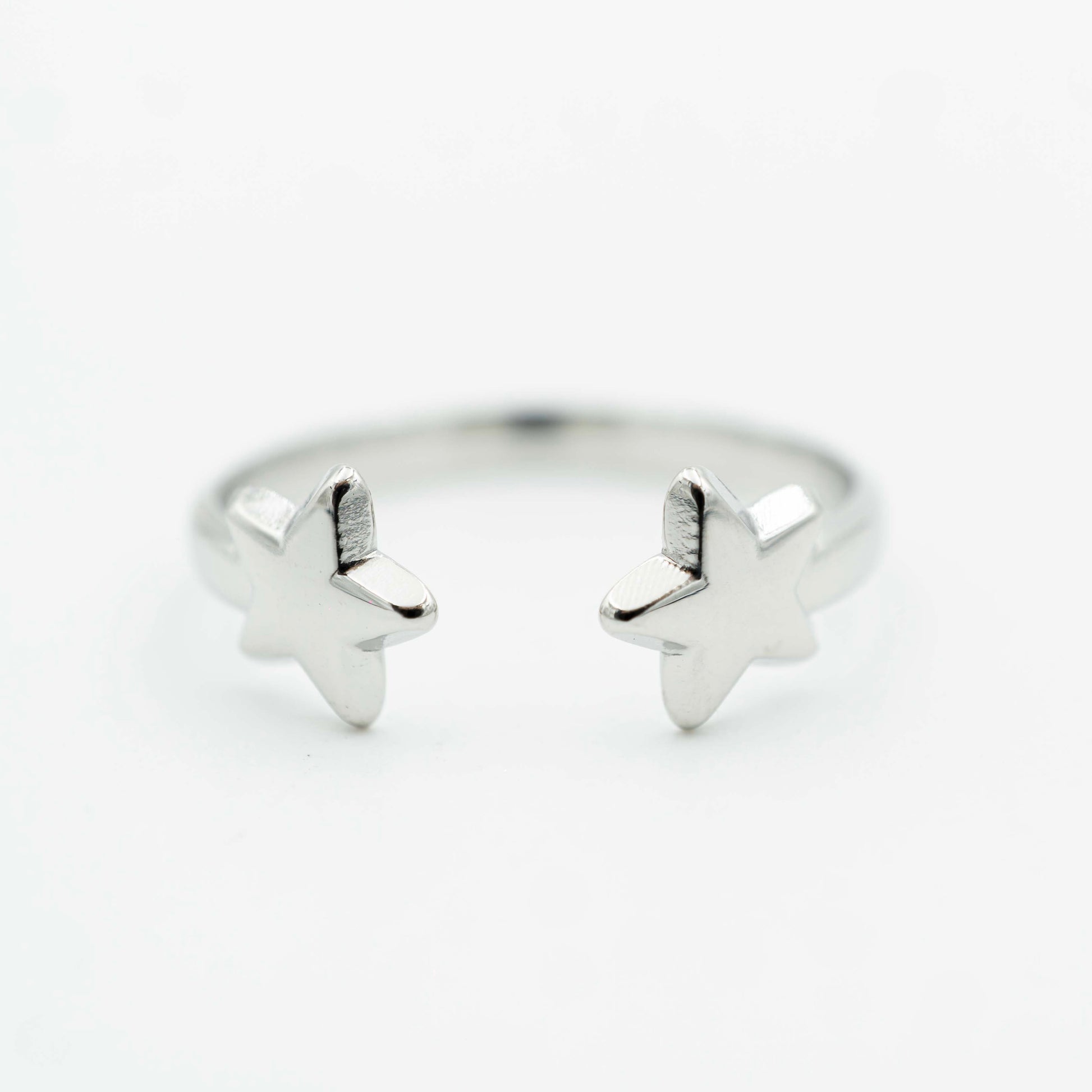Diseño abierto con doble estrella en acabado plateado o dorado.