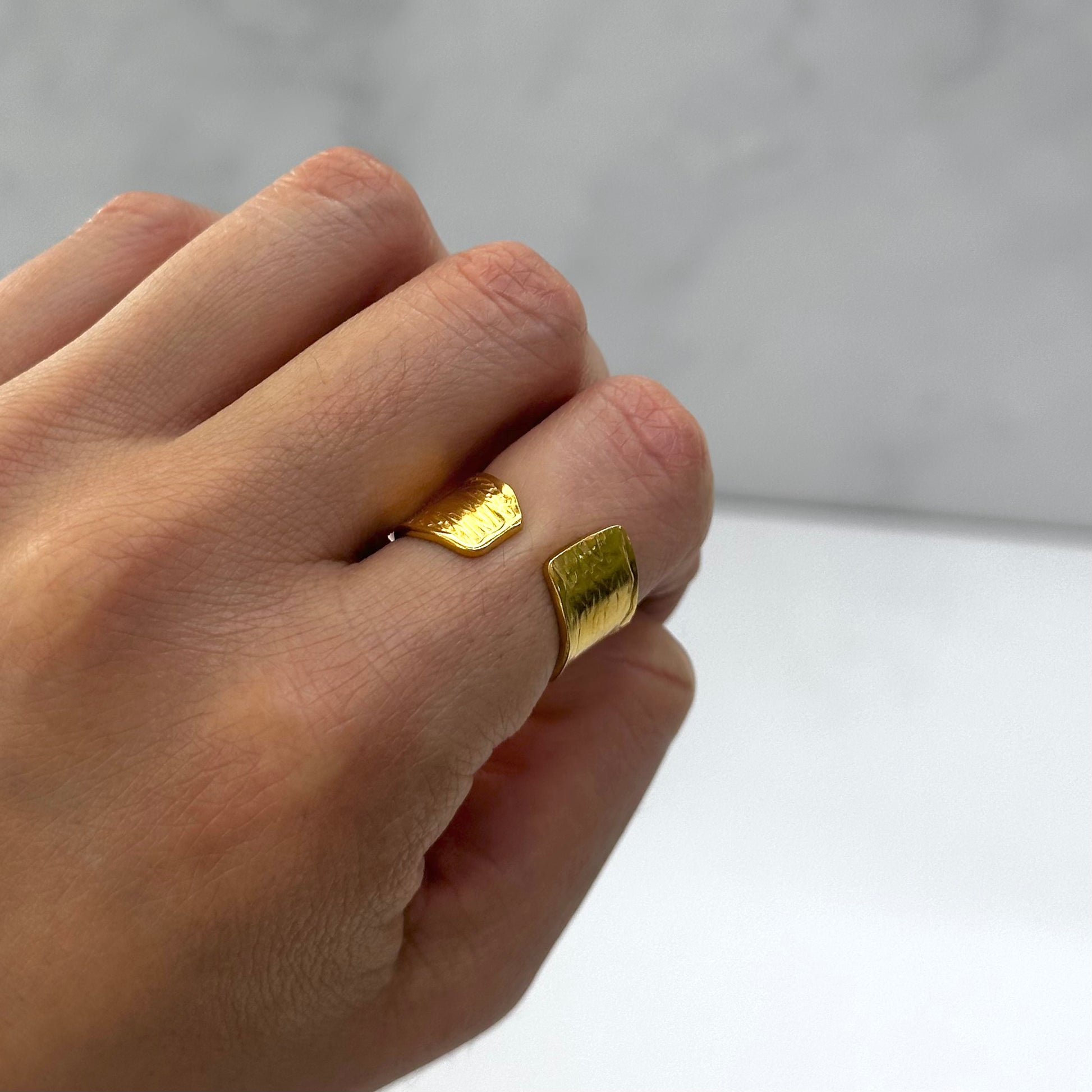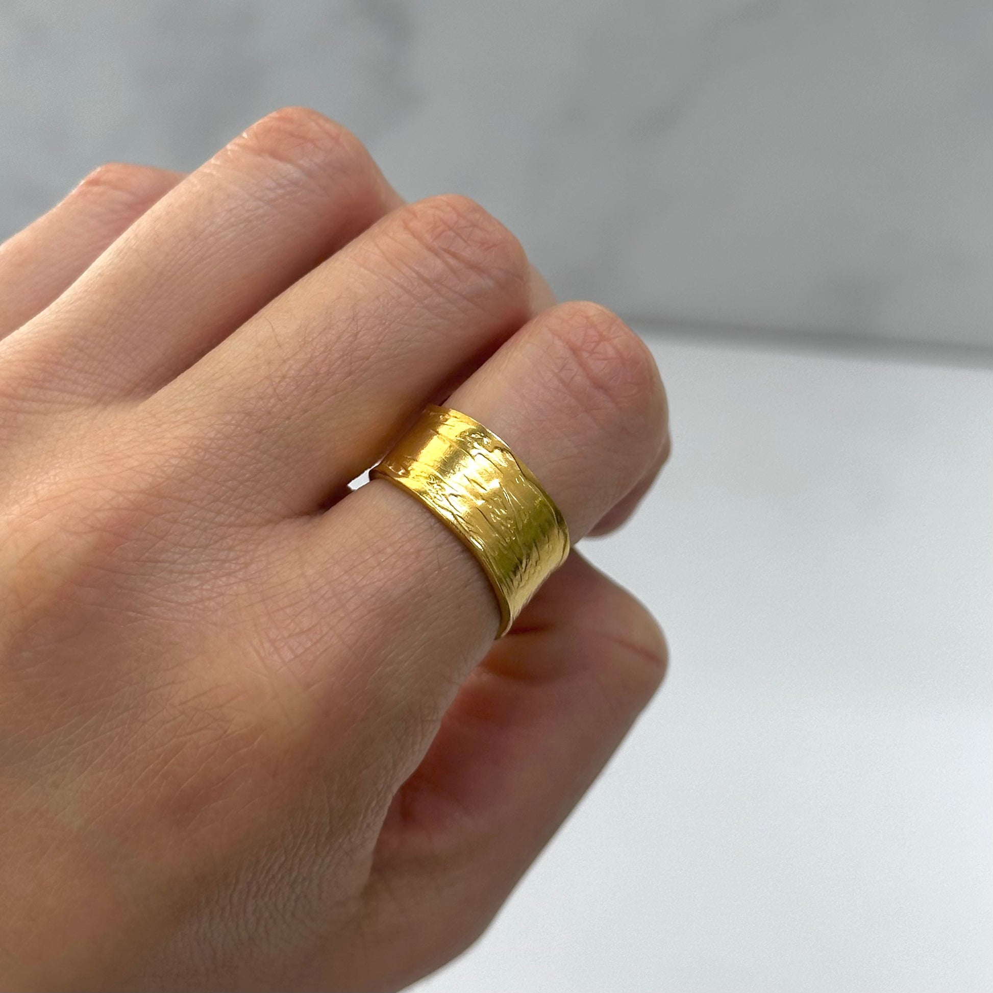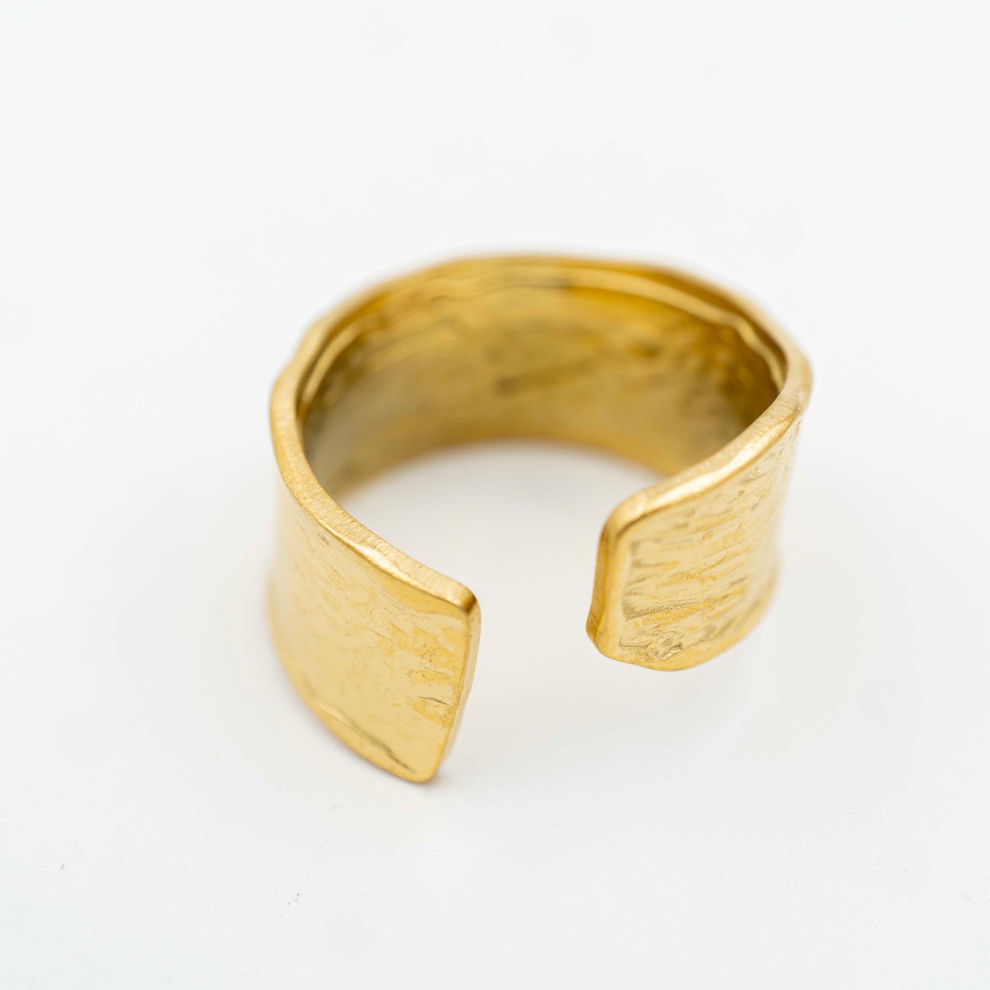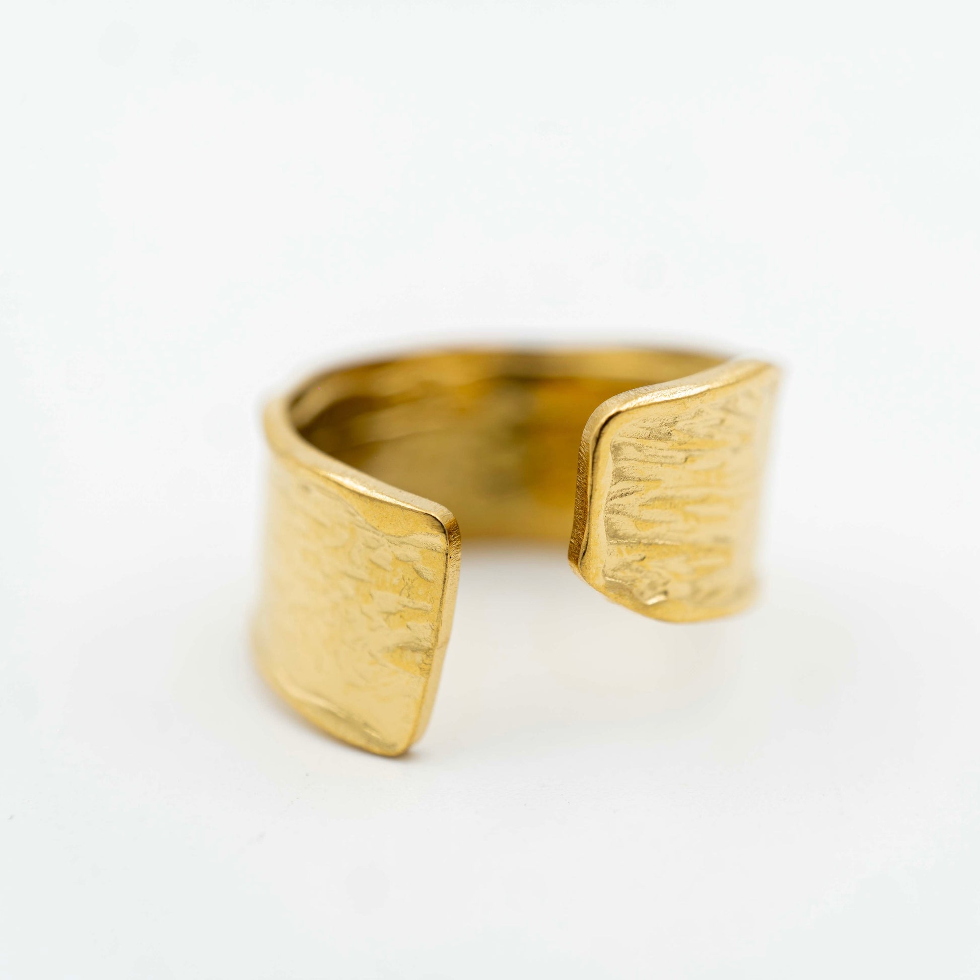 Anillo abierto en dorado con textura orgánica.
