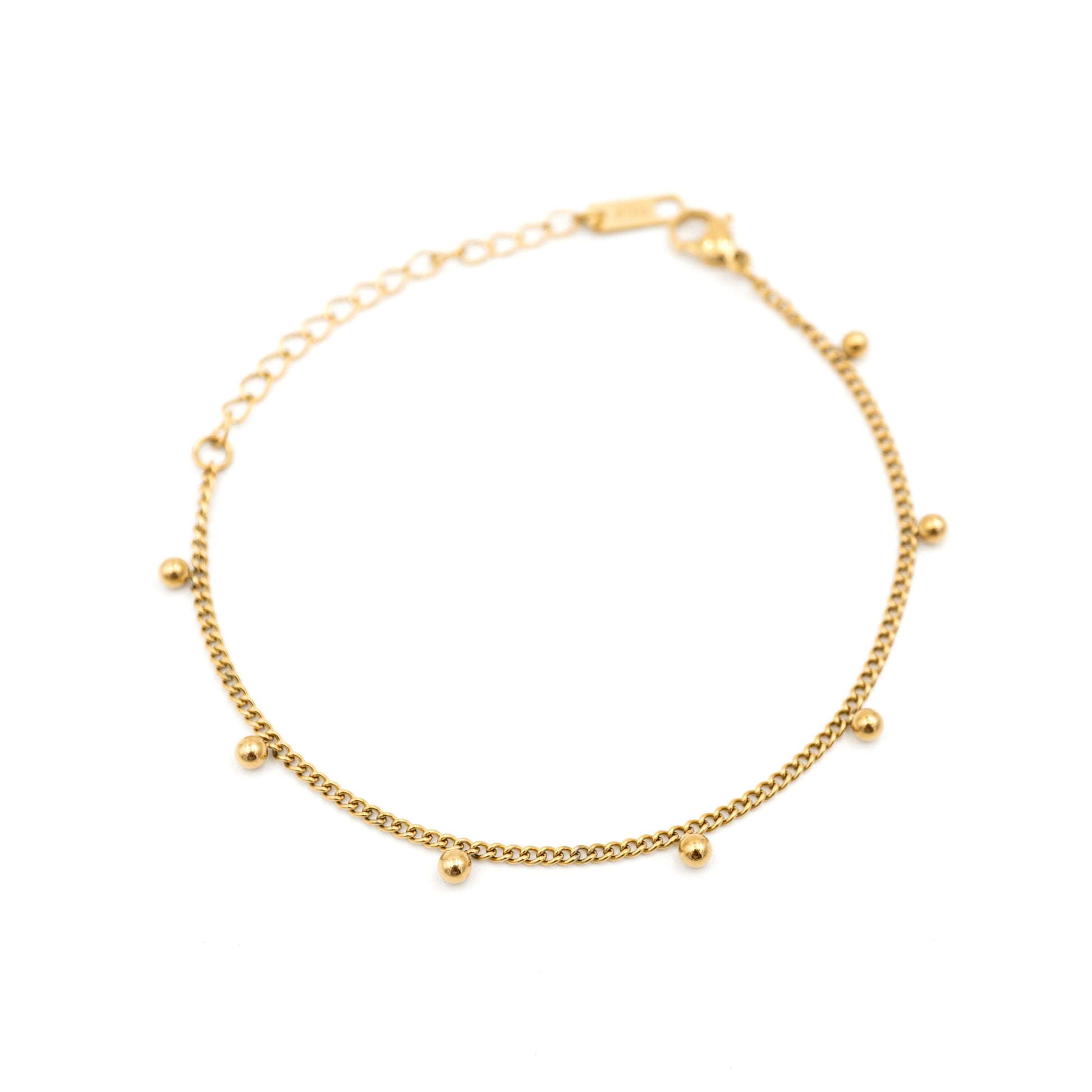 Hermosa pulsera con esferas doradas a lo largo. ¡Resistente al agua y las cremas!